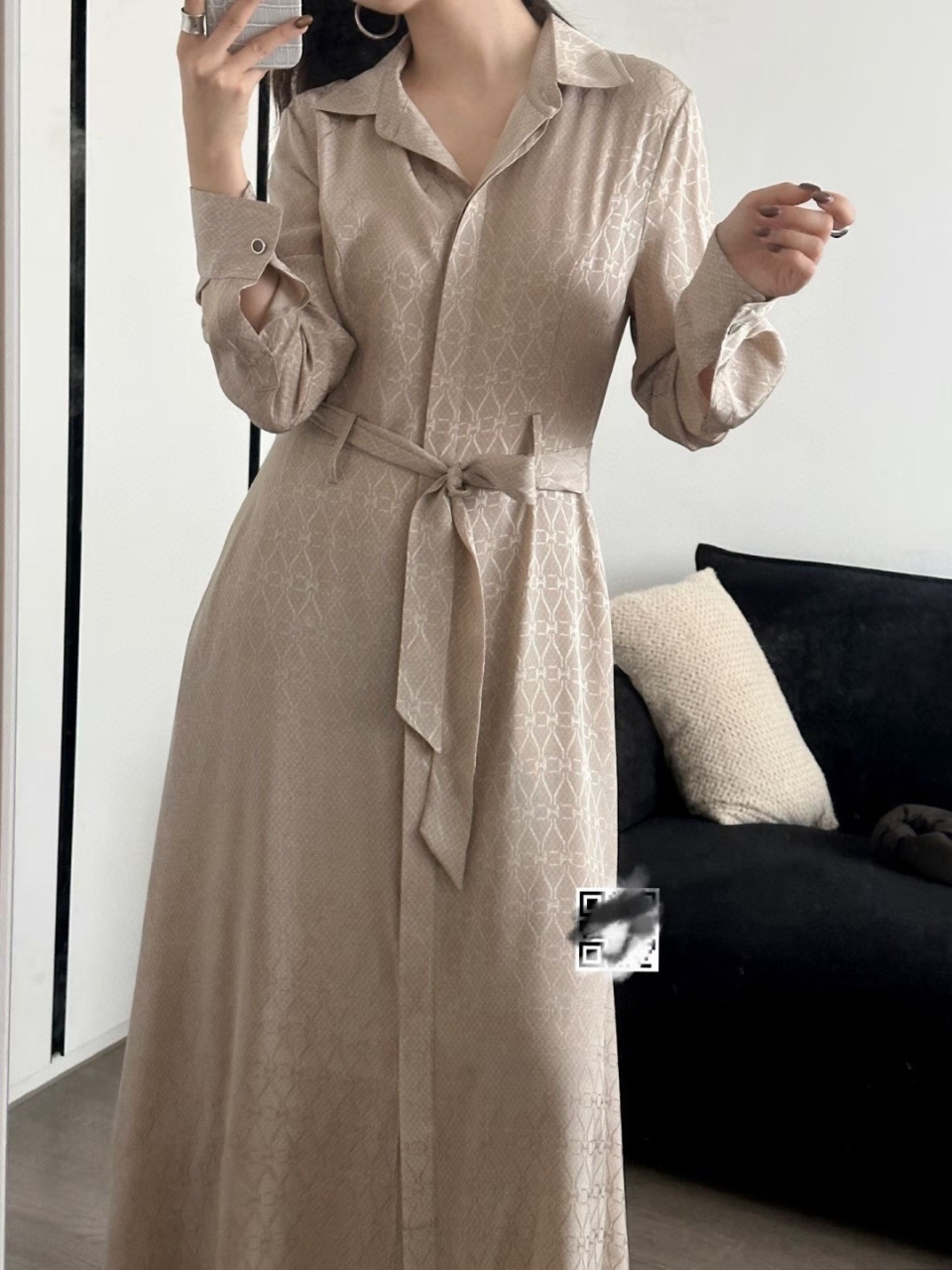 은은하게 드러나는 자카드 패턴과 차분한 베이지 컬러가 만들어내는 고급스러운 분위기. 허리 벨트 디테일로 자연스럽고 슬림한 실루엣 완성.