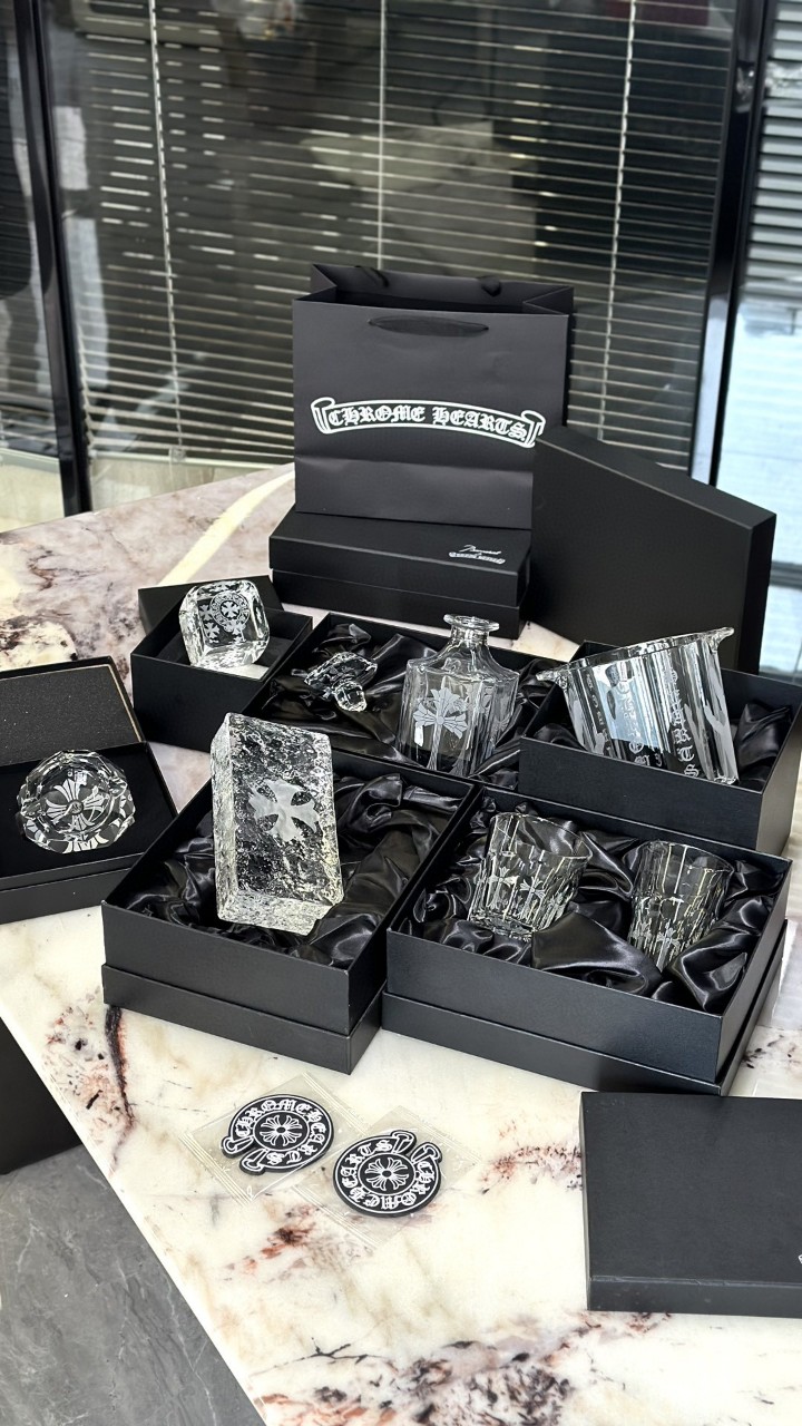 크롬하츠 특유의 강렬한 아이덴티티와 바카라의 최상급 크리스탈 기술이 만난 하이엔드 콜라보 컬렉션 풀세트입니다. 빛을 받는 순간 투명감과 반사광이 확 살아나며, 크롬하츠 시그니처 감성이 디테일마다 녹아 있어 테이블웨어를 넘어 컬렉션급 럭셔리 오브제로 손색이 없습니다.