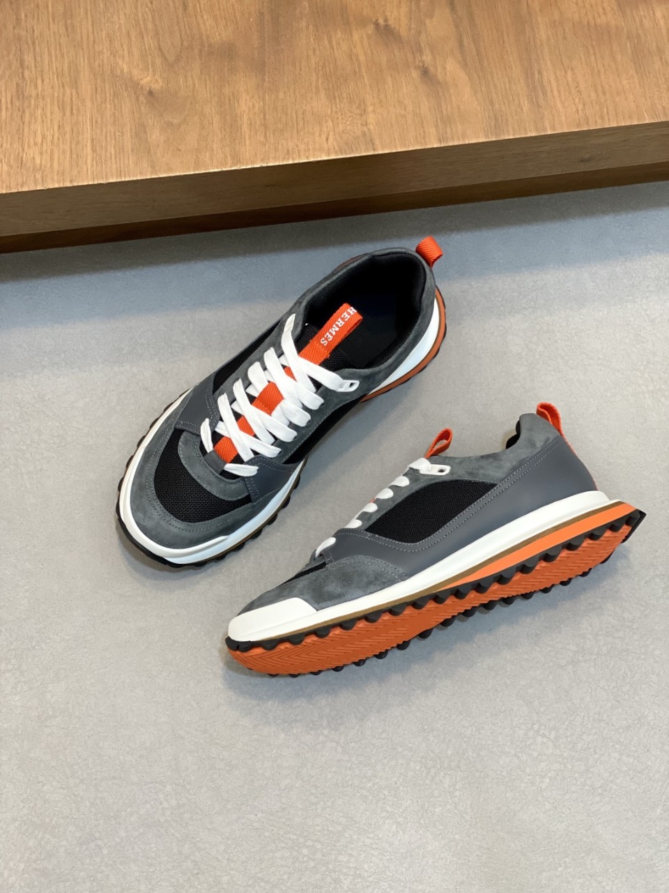 ◼ 에르메스 리더 스니커즈 블랙&오렌지 포인트 에디션은