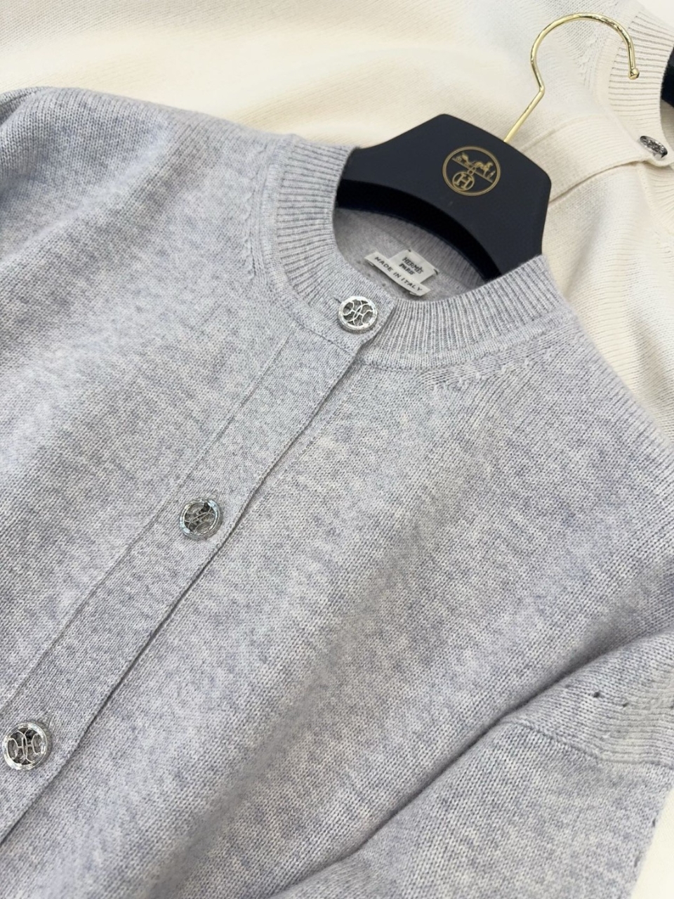 부드러운 울 혼방 소재로 따뜻함과 착용감을 동시에 만족시키는 아이템. 미니멀한 디자인과 고급스러운 버튼 디테일이 어우러져 에르메스 특유의 절제된 우아함을 완성합니다.