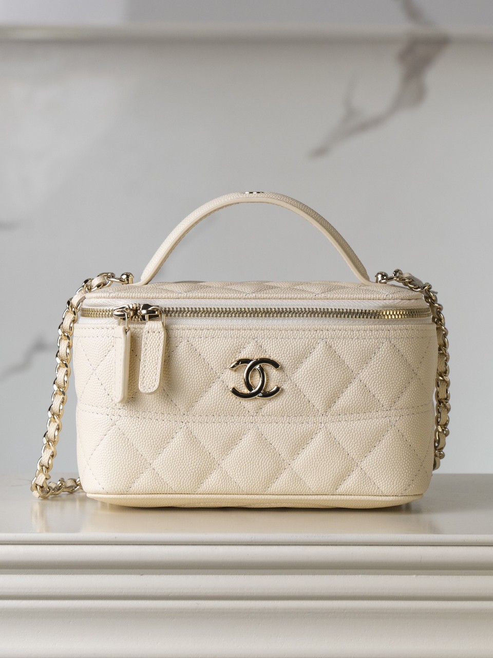 Chanel 샤넬 25C 신상 화이트 카프스킨 핸들 박스백 (골드 체인)