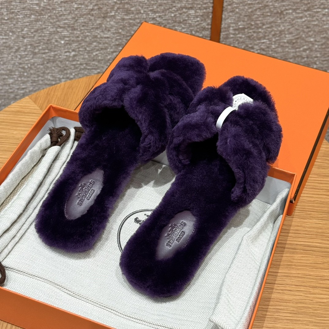 HERMÈS 에르메스 오란 샌들 (양털 울스킨 / Raisin 레이즌 퍼플)