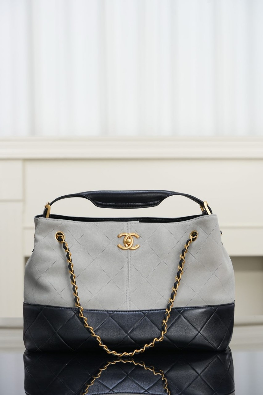 Chanel 25A 사슴가죽 쇼퍼백 그레이 블랙