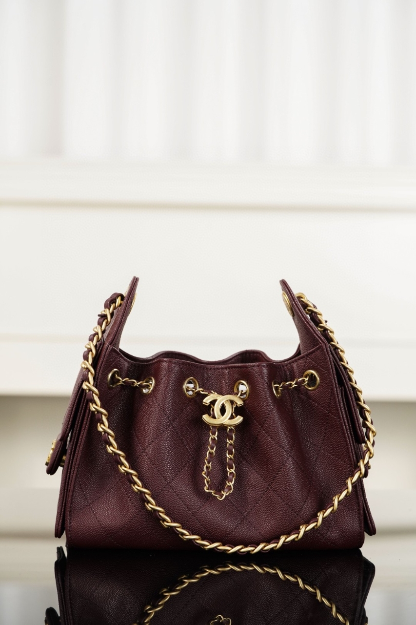 CHANEL 26C 샤넬 25 미니 버킷백 버건디 금장