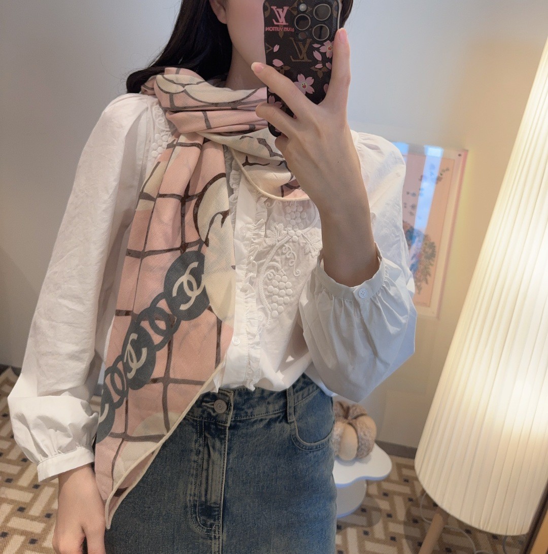 CHANEL 샤넬 클래식 코코 플라워 체크 스카프