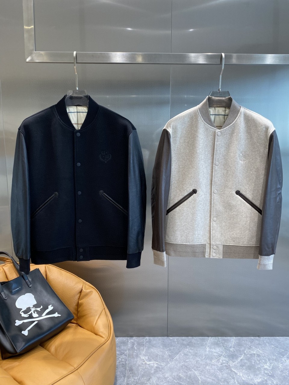 몸판 울 소재 + 소매 가죽 조합으로 세련된 투톤 라인