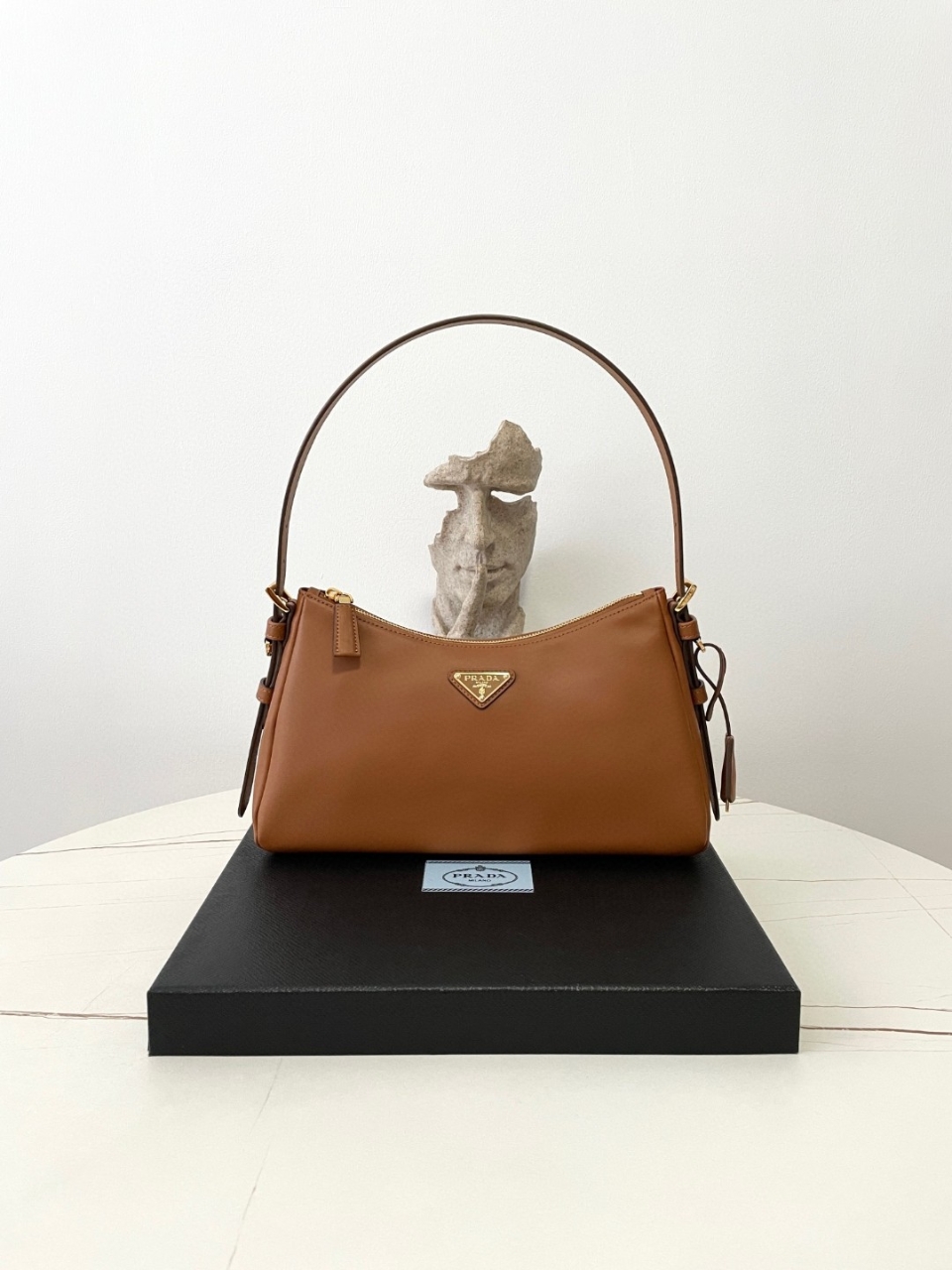 프라다 에이미 미디엄 레더 숄더백Prada Aimée Medium Leather Shoulder Bag프라다 2024 FW 컬렉션에서 선보인신상 라인 ‘Aimée(에이미)’ 모델로,90년대 미니멀리즘 감성을 현대적으로 재해석한 아이템입니다. 부드러운 곡선과 자연스럽게 떨어지는 실루엣이 특징인호보 스타일 숄더백으로, 데일리 활용도가 매우 높은 모델입니다.---DETAIL• 프리미엄 카프스킨 레더→ 부드럽고 유연한 고급 가죽 텍스처• 자연스럽게 처지는 호보 쉐입→ 편안하면서도 세련된 실루엣• 프라다 시그니처 에나멜 삼각 로고→ 절제된 포인트로 브랜드 감성 강조• 지퍼 클로징 + 내부 포켓 구성→ 실용적인 수납 구조• 길이 조절 가능한 숄더 스트랩→ 핸드 / 숄더 2WAY 연출 가능---SIZE가로 31cm세로 18cm폭 10cm(공홈 기준 동일 스펙) ---MODEL INFOProduct Code : 1BC229(공식 모델 코드 동일) ---
