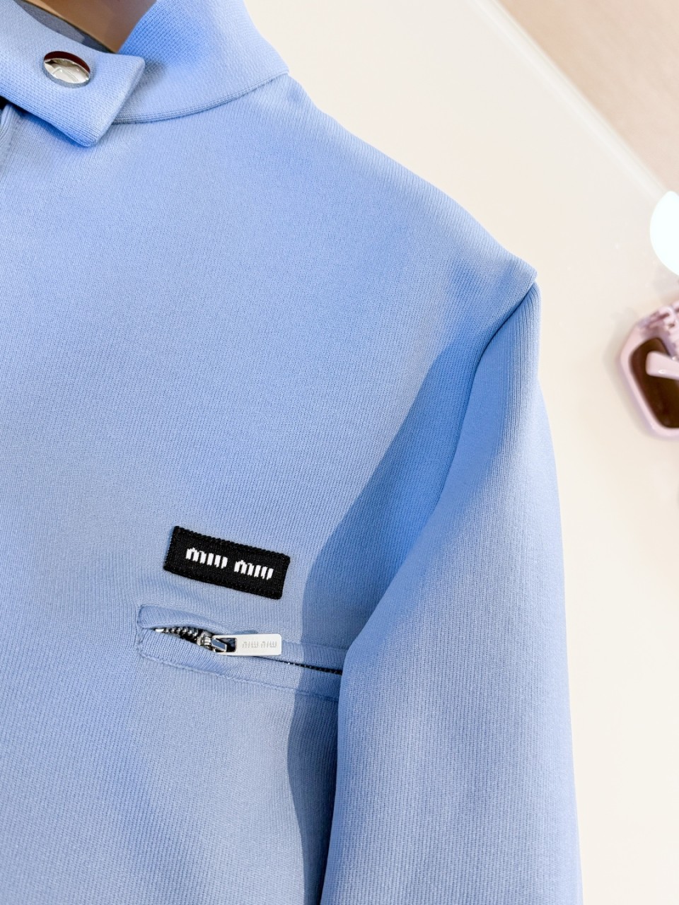 MIUMIU 25SS 블루 로고 반하이넥 집업 카디건