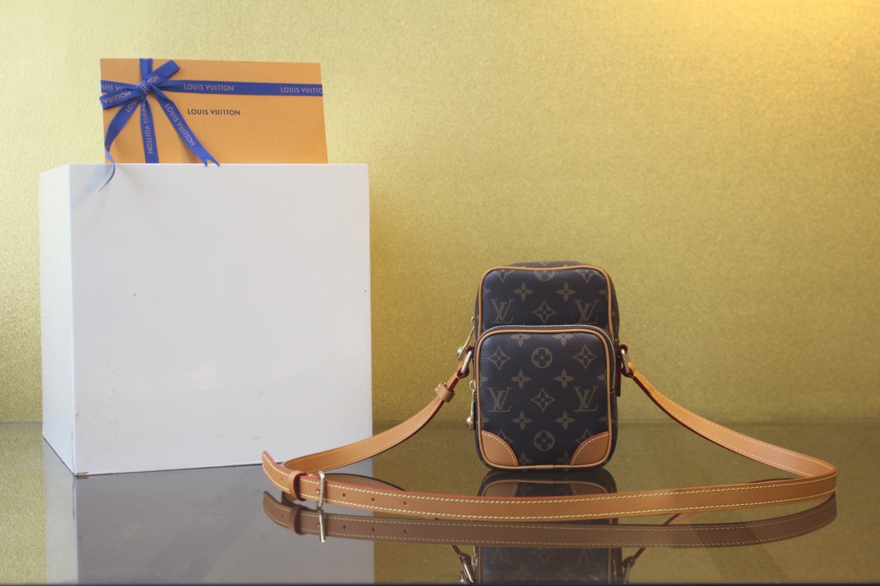클래식 Monogram 캔버스 + 천연 소가죽 루이비통 시그니처 Monogram과 내추럴 레더 디테일이 어우러져 빈티지하면서도 세련된 무드 완성. 컴팩트한 크기 & 실용성 작지만 전면 지퍼 포켓과 메인 공간으로 구성되어 효율적인 수납 가능.