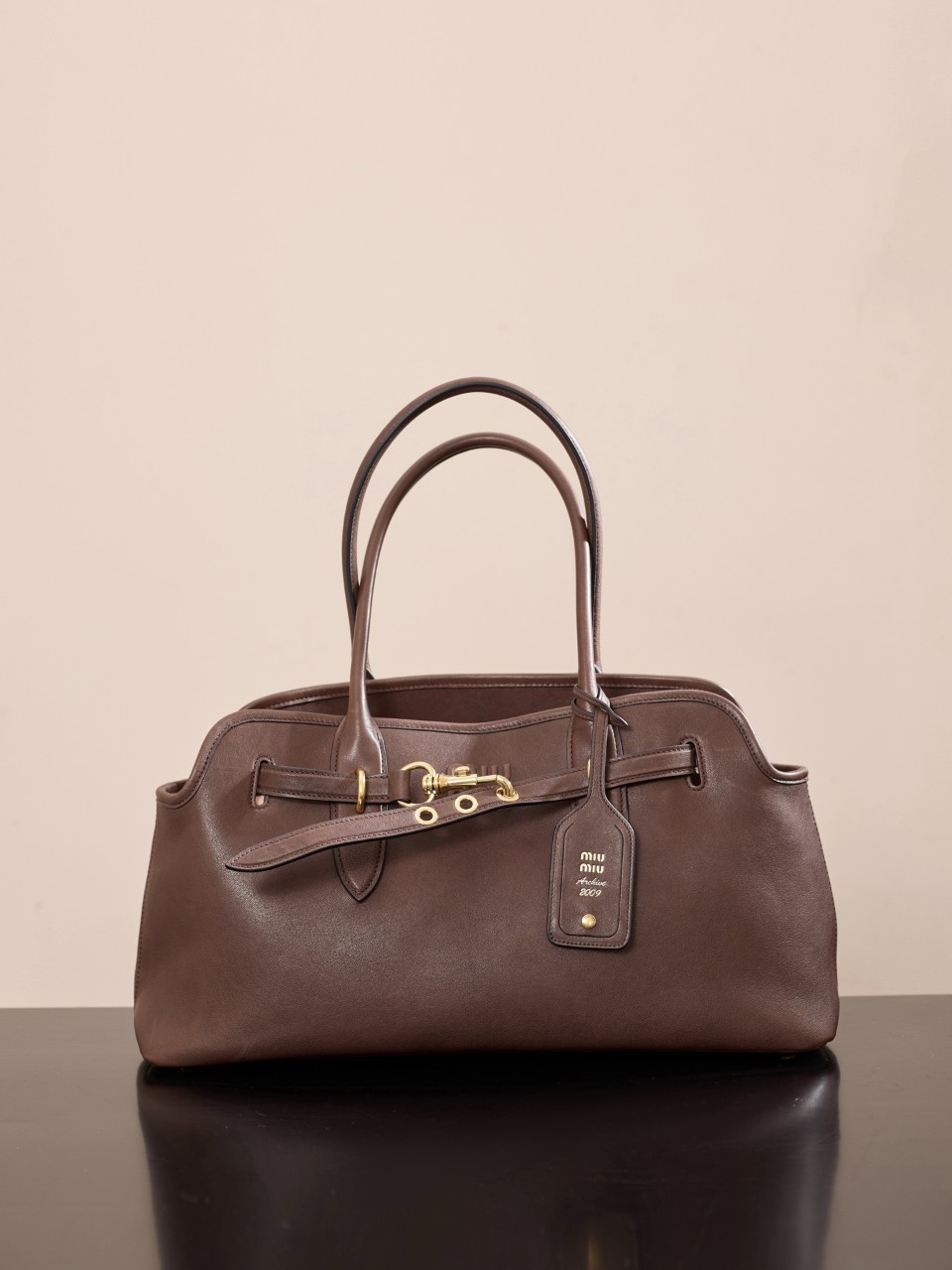 MIU MIU 미우미우 아르카디 마테라쎄 양가죽 미디움백 (다크브라운)