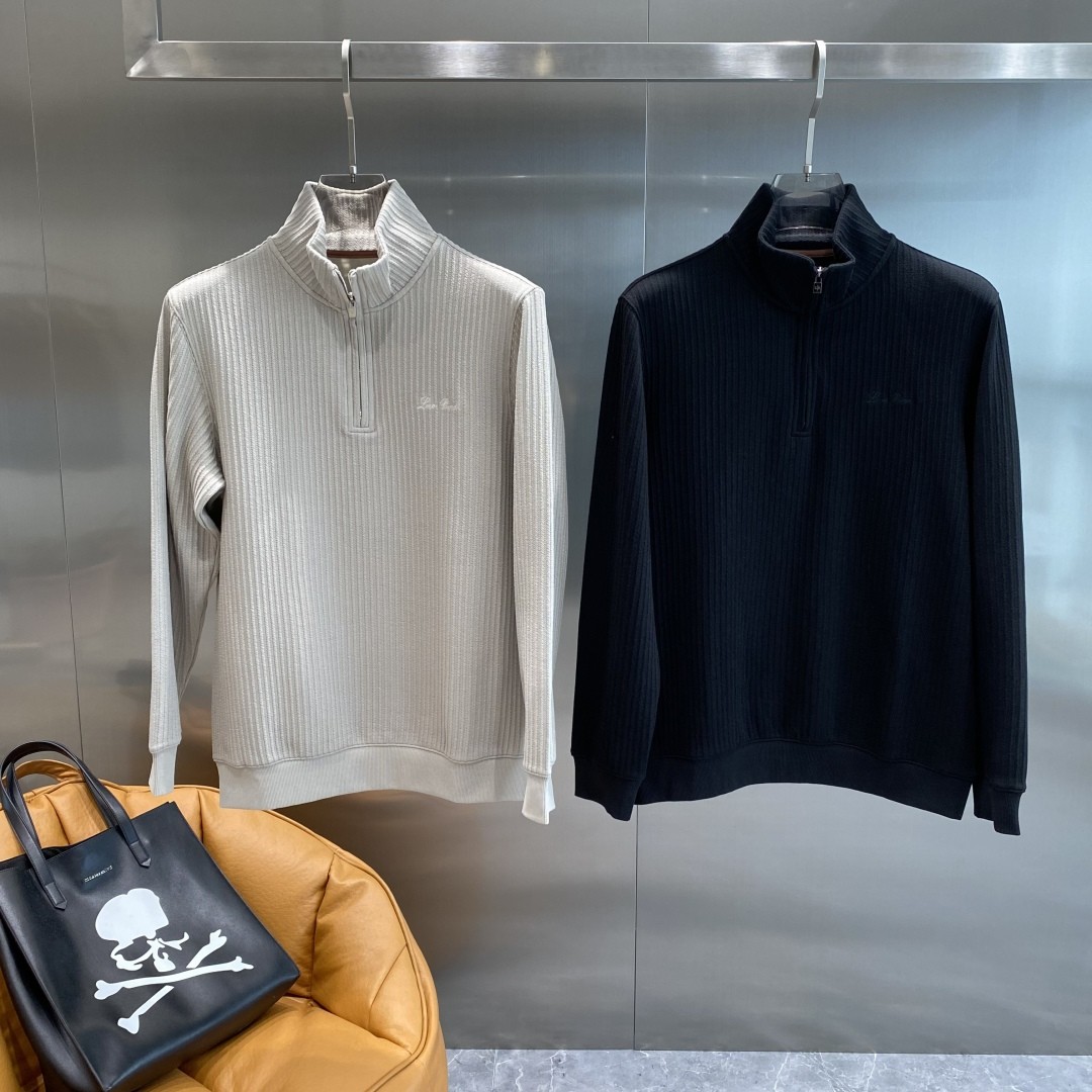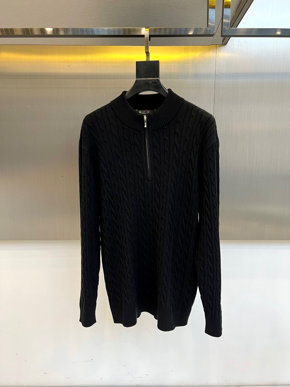 Loro Piana 로로피아나 남성 반집업 하이넥 케이블 니트 [ 블랙 ]