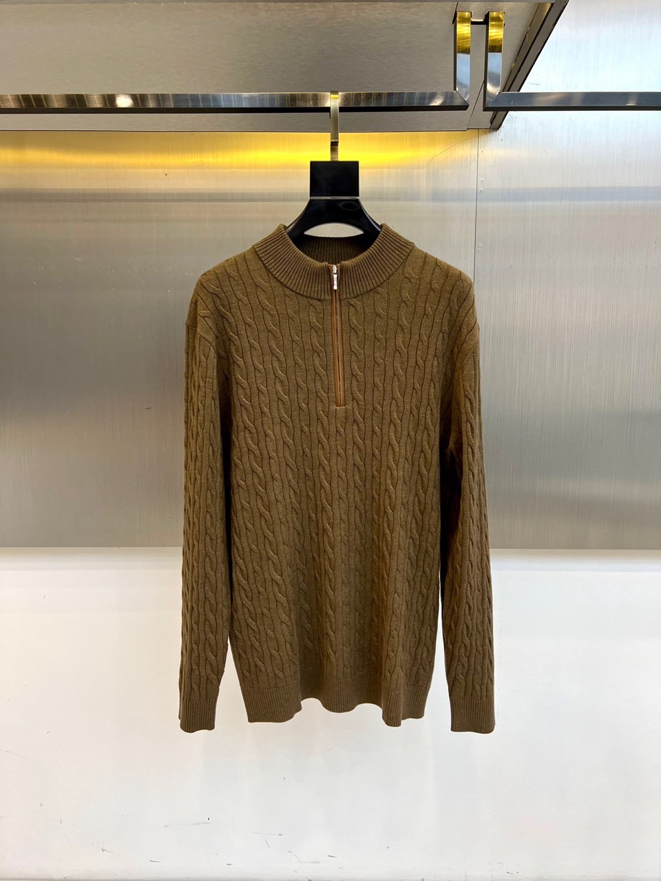 Loro Piana 로로피아나 남성 반집업 하이넥 케이블 니트 [ 브라운 ]