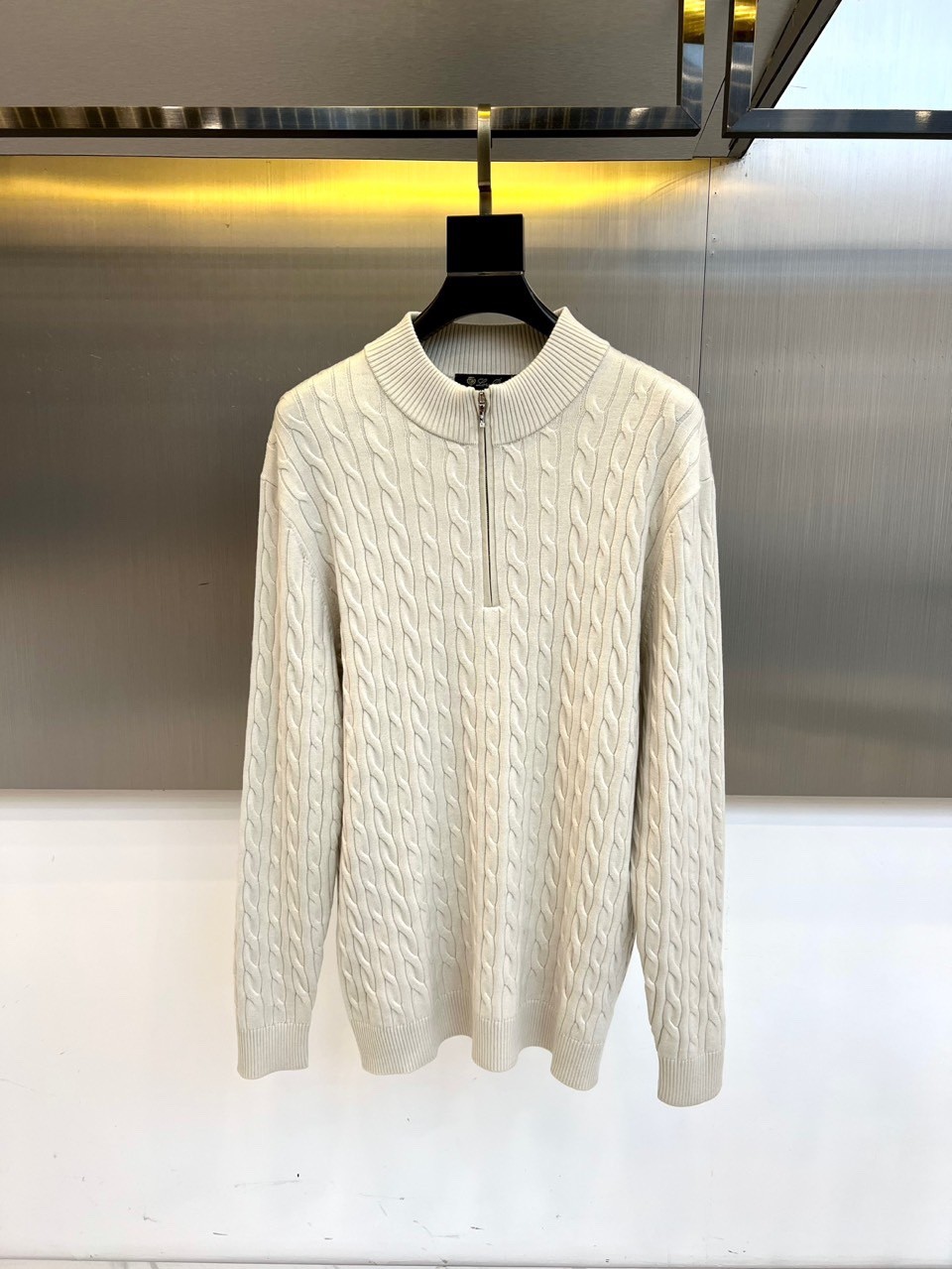 Loro Piana 로로피아나 남성 반집업 하이넥 케이블 니트 [ 아이보리 ]