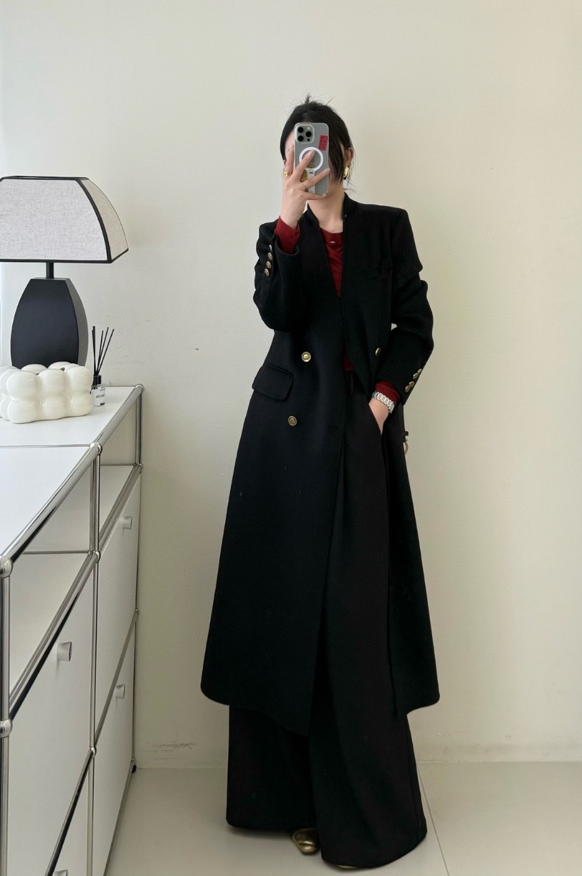 SAINT LAURENT 생로랑 여성 울 더블 롱 코트 (블랙)