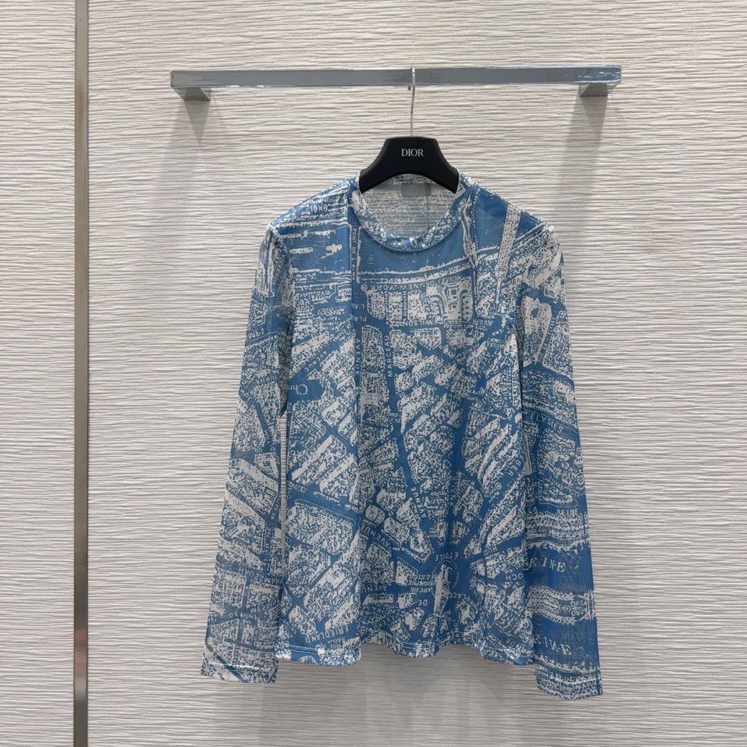 Dior 디올 프리미엄 시스루 프린트 톱 (블루)