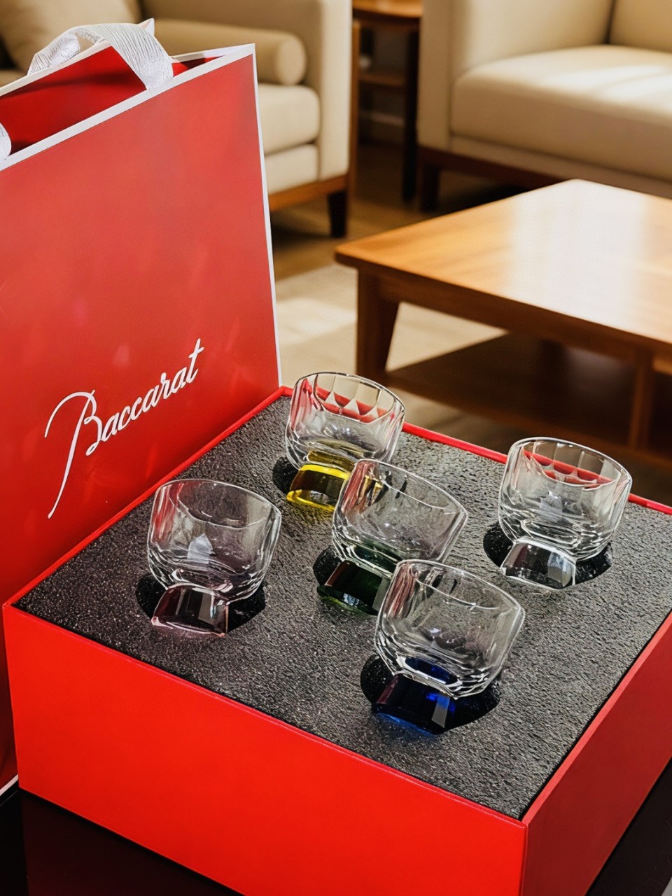 BACCARAT 바카라 크리스탈 위스키잔 5P 세트 (레드 기프트박스 / 리본 / 설명서..