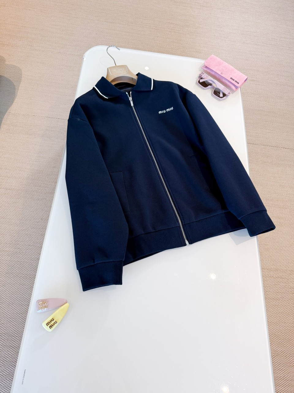 MIUMIU 미우미우 네이비 자수 칼라 집업 재킷