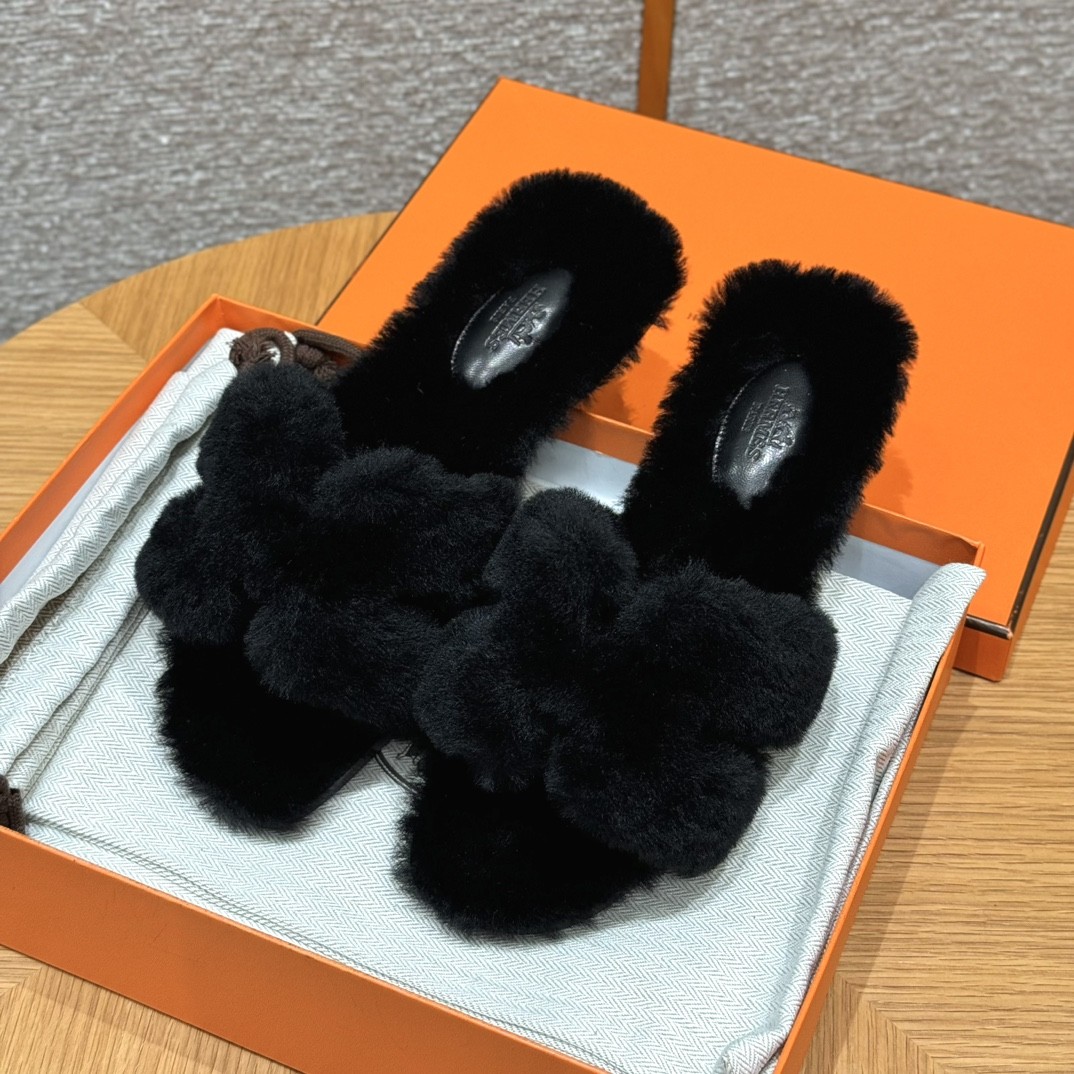 HERMÈS 에르메스 오란 샌들 (양털 울스킨 / Noir 블랙)